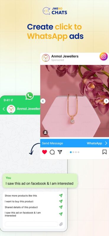 Unlike generic WhatsApp Business API based messaging platforms, JWERO Chats is tailored to the unique needs of jewellers, helping businesses connect with customers across WhatsApp, Instagram, Facebook, website live chats, and more, all from a single dashboard.