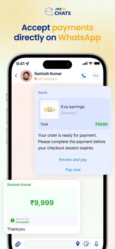 Selling jewellery directly on WhatsApp has never been easier! With JWERO Chats, you can accept payment on WhatsApp or send a payment link for selected products.