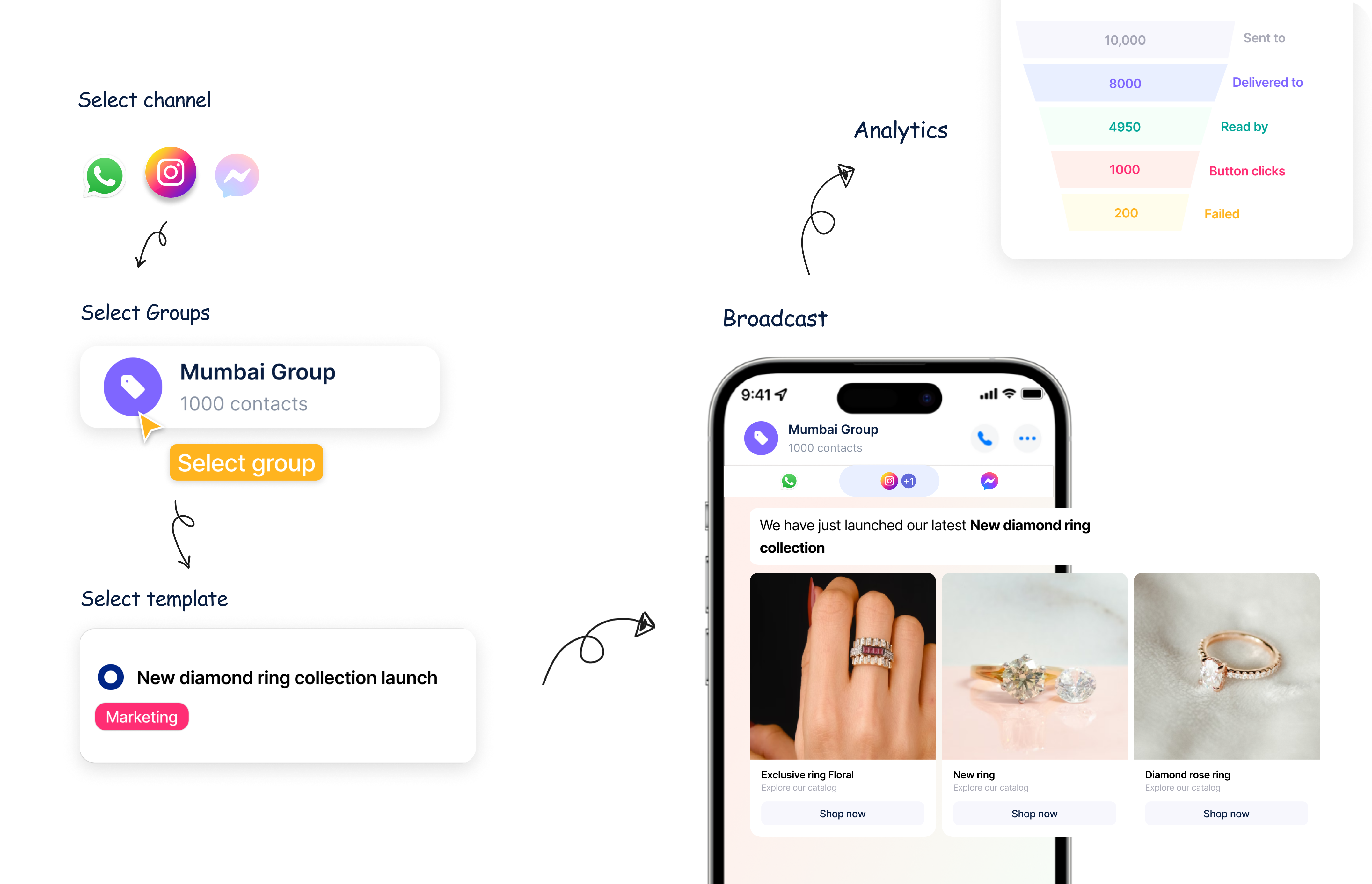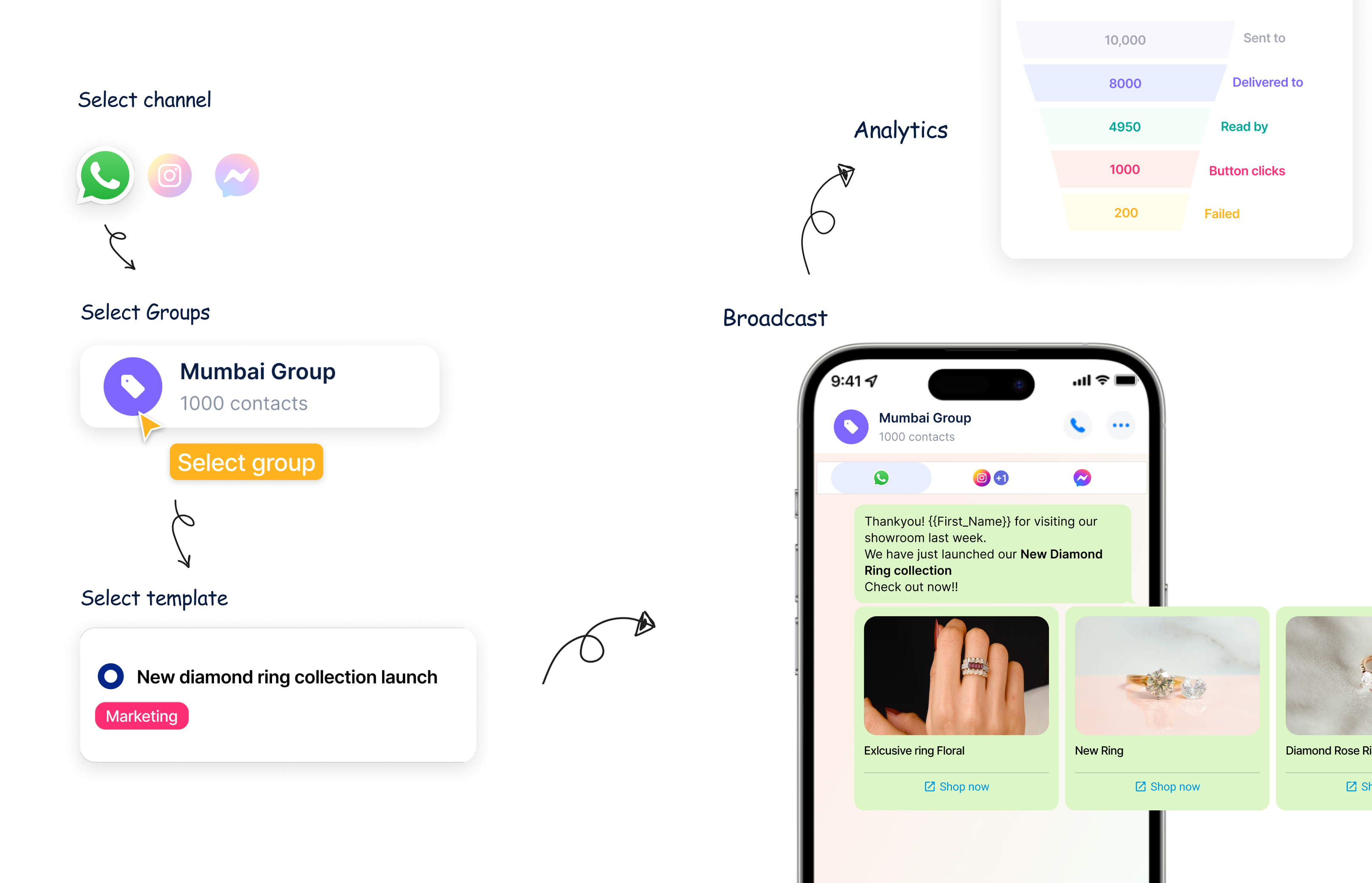 Send Whatsapp broadcast messages without getting blocked & manage free broadcasts on Facebook & Instagram