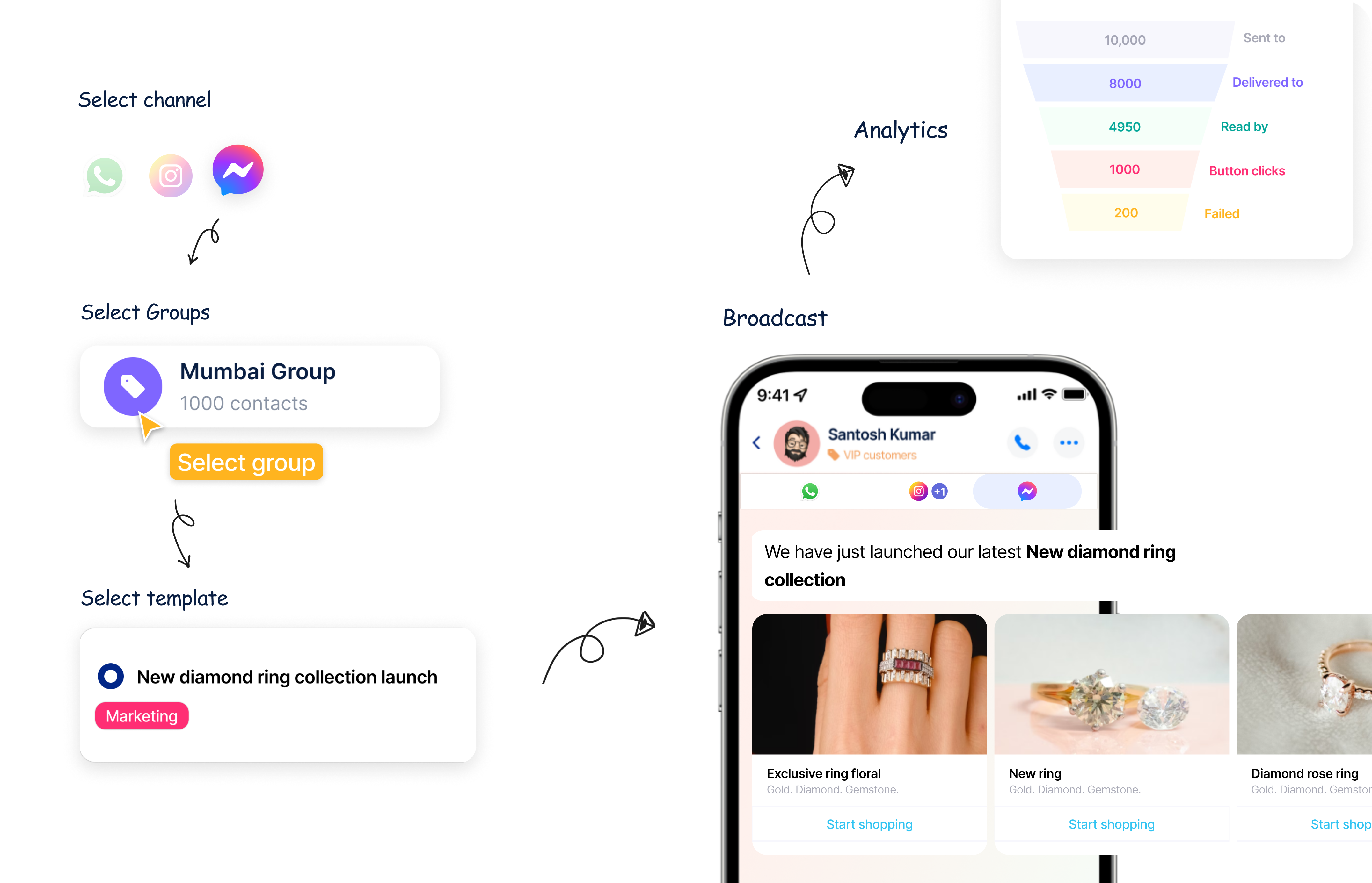 Jwero Chats is a powerful multi-channel messaging platform tailored for jewellers. It allows seamless customer communication across WhatsApp, Instagram & Facebook (DMs and Comment replies), and your website’s chat, all from a single, easy-to-use dashboard. Built on Meta’s WhatsApp Business API.