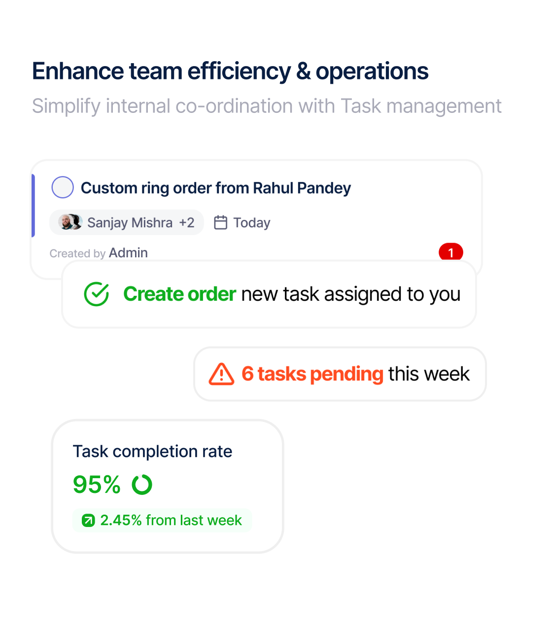 Example: During peak wedding season, assign a “Priority Client” tag to a customer inquiring about a ₹10L bridal set. The sales team gets automated alerts, and tasks like “Share 3D design mockups by EOD” stay visible until completed.